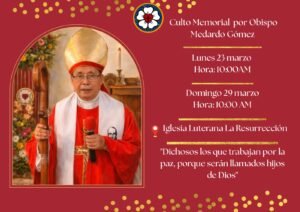 INVITAMOS AL CULTO MEMORIAL DEL ANIVERSARIO UNO DEL OBISPO, MEDARDO GÓMEZ.